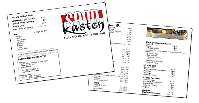 Sandkasten - Speise-/Getränkekarte